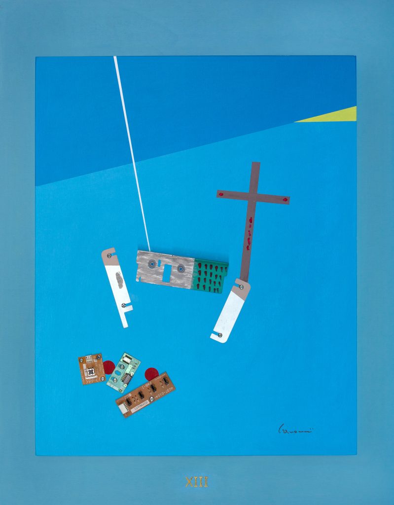 Opera costruita con componenti metallici e schedine multifunzione.