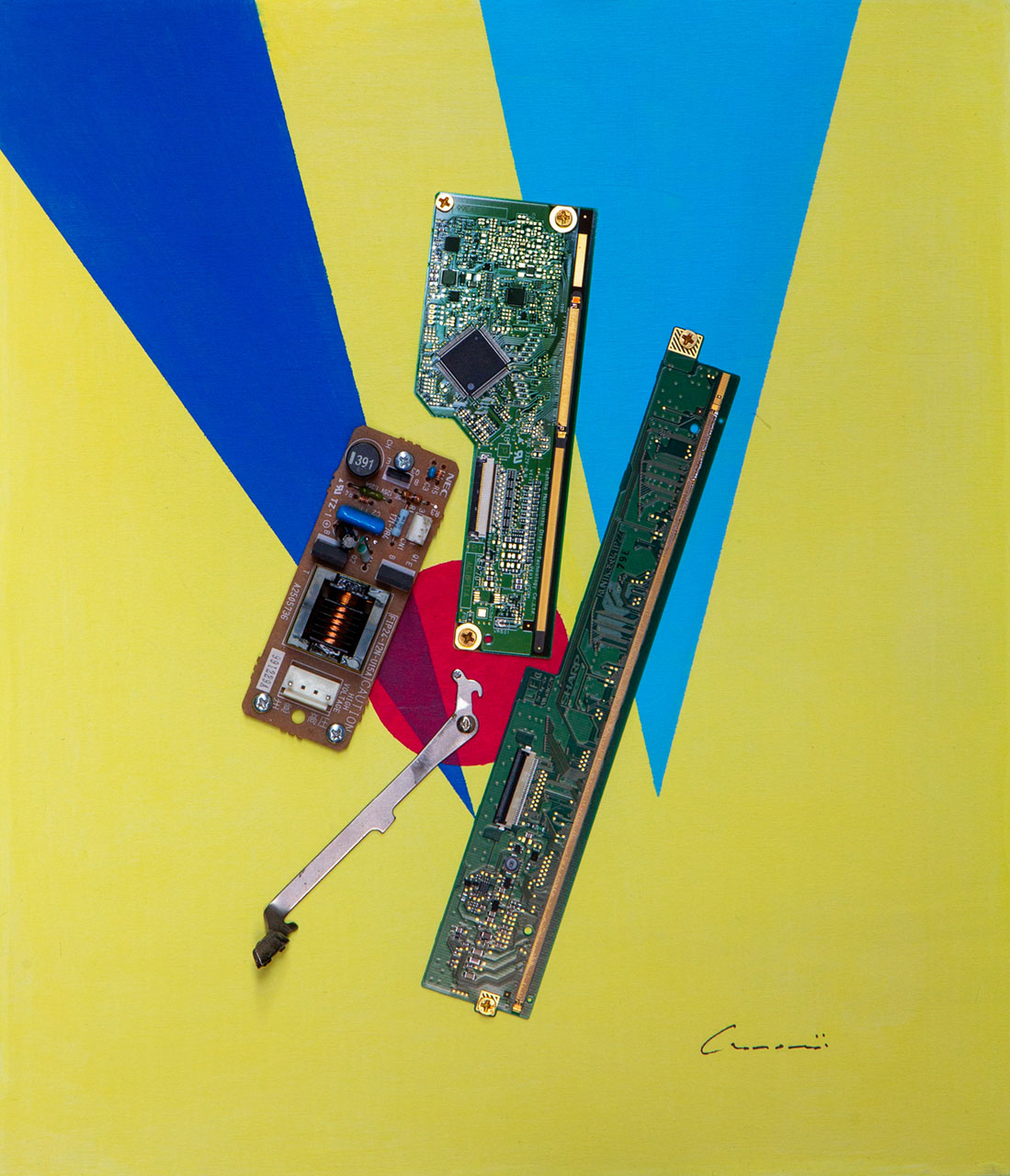 Opera costruita con martelletto, induttore e schede multifunzione.