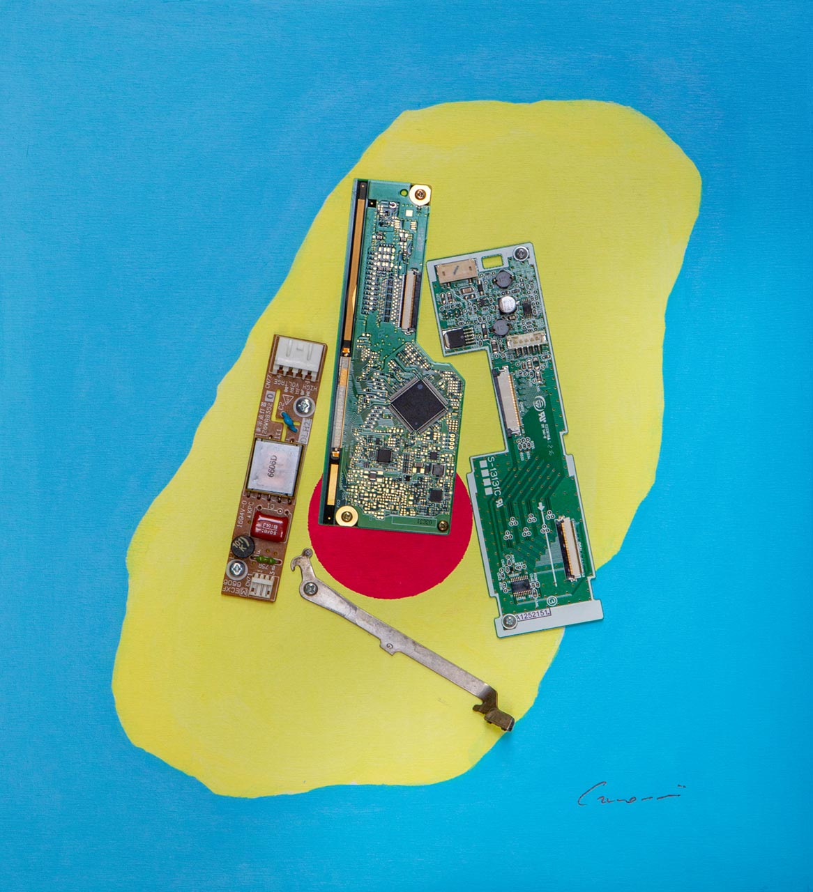 Opera costruita con martelletto, induttore e schede multifunzione.